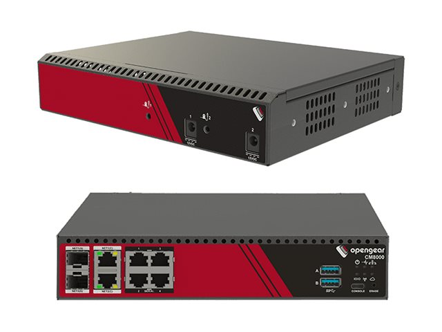 Model CM8004, 4x RS232 X2 pinout ports, 2x 1GbE/SFP combo, 2x USB 3.0, ARM 1.6GHz 4-core 4GB mem 32GB flash, TPM 2.0, Docker support, DC jacks, 450048 Power Brick and C14 Power cable
