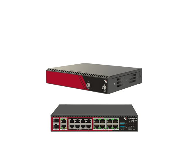 Model OM1308-8E, 8x RS232 X1 or X2 software selectable ports + 8x 1GbE switched, 2x 1GbE/SFP combo, 2x USB 3.0, ARM 1.6GHz 4-core 4GB mem 32GB flash, TPM 2.0, Docker support, barrel threaded DC jacks, 450047 Power Brick and C14 Power cable,